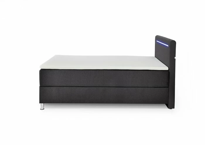 - Inkl. 1 frontal klappbaren Bettkasten, Kopfteil inkl. LED-Beleuchtung in blau