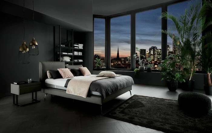 - Gestell aus Spanplatte mit Stoffbezug in Galero Graphit