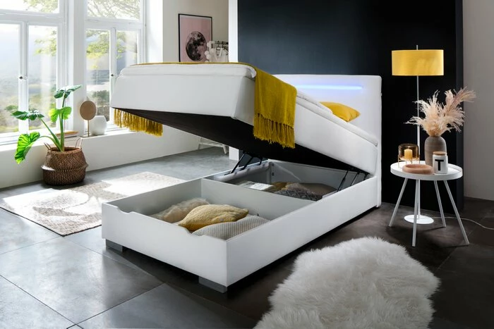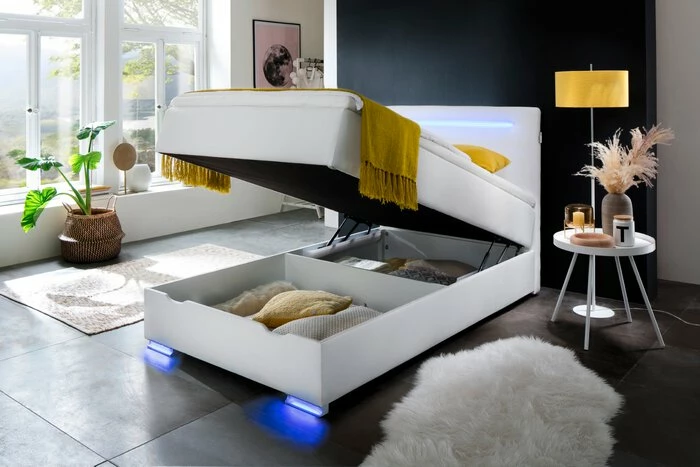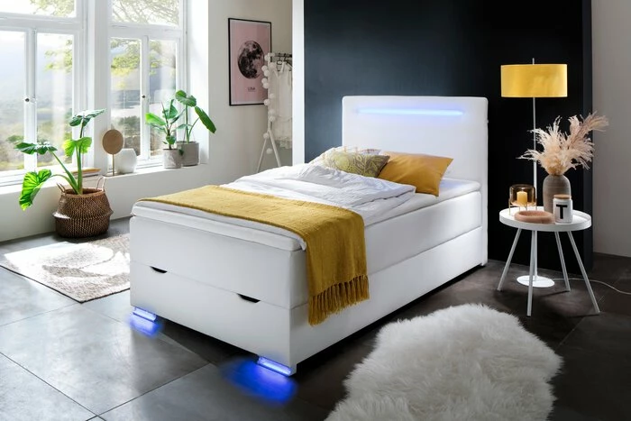 - Füße und Kopfteil inkl. Beleuchtung in blau, Kopfteil inkl. USB-Anschluss