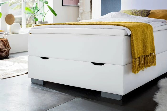 - Mit Bonellfederkernmatratze 120 x 200 cm, Bonell-Boxunterbau und Bonellfederkernmatratze befinden sich zusammen in einem durchgehenden Bezug