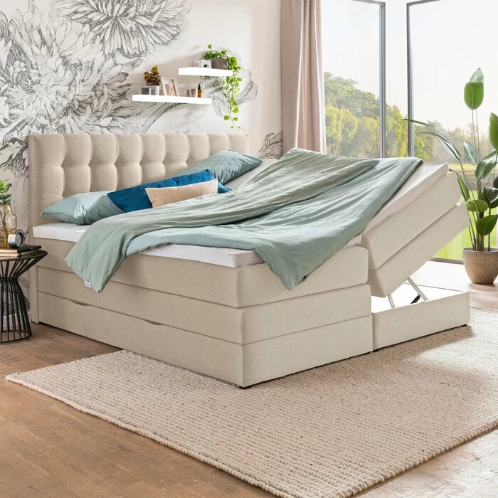 - Boxunterbau „BX9“ mit Bonellfederkern inkl. Bettkasten links und rechts, seitlich zu öffnen