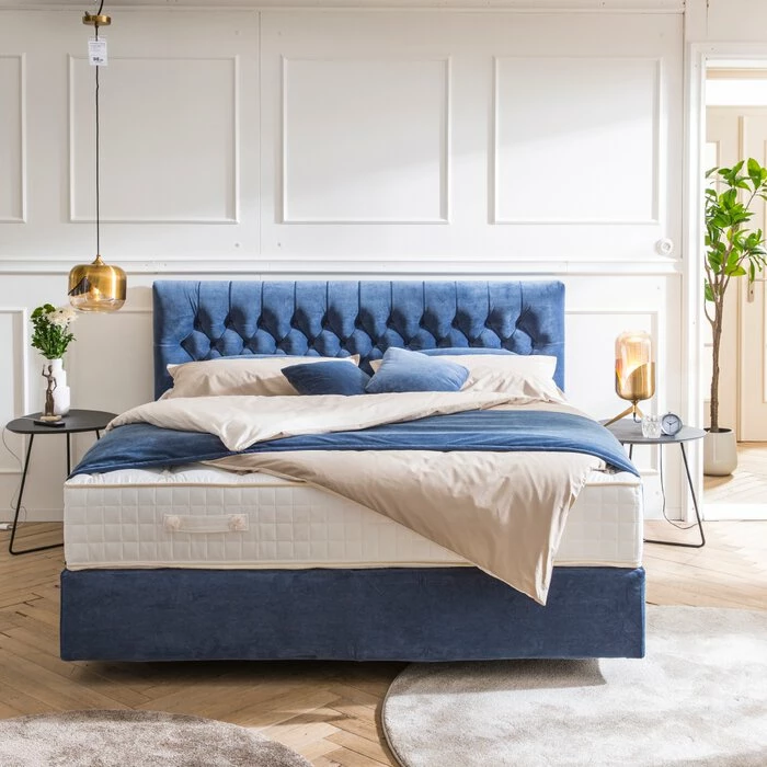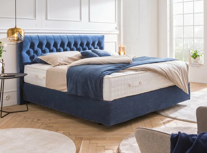 - Mit 1x 7-Zonen-Tonnentaschenfederkernmatratze mit integriertem Hypersofttopper und Knopfheftung 200 x 200 cm in Härtegrad 1 und Härtegrad 2