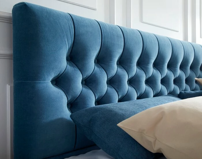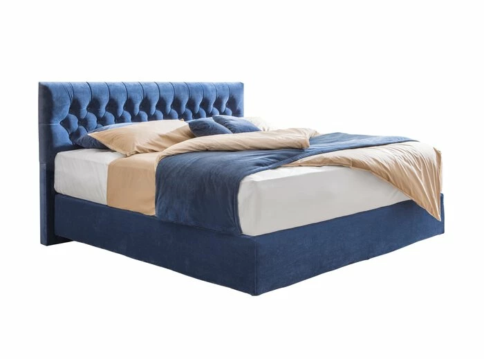 - Gestell aus Spanplatte mit Stoffbezug in blau