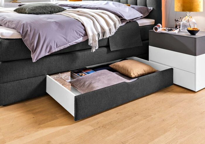 - Boxunterbau „BX7“ mit Bonellfederkern, inkl. Bettschubkasten links und rechts