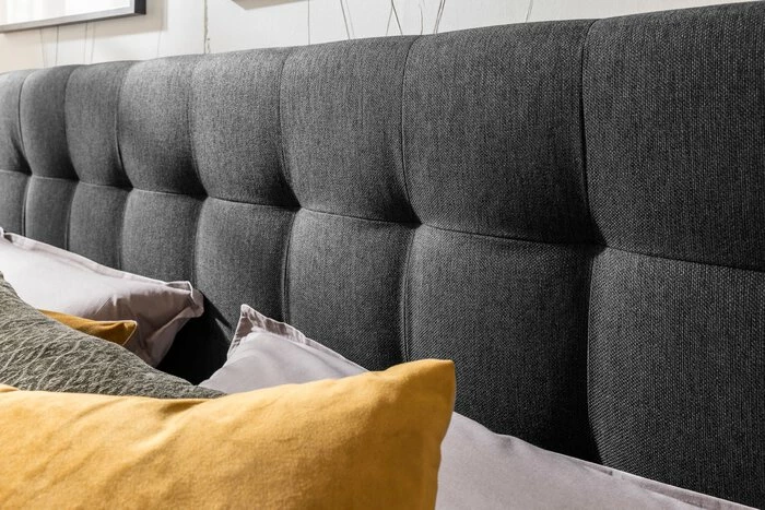 - Kopfteil „Dafne“ mit Quadratsteppung jeweils 20 cm rechts und links überstehend