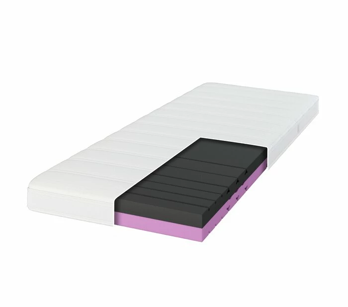 - 7-Zonen- Komfortschaumkern mit innovativer Schulterkomfortzone und mittelfestem Liegekomfort bzw. 7-Zonen-Hybridschaumkern mit innovativer Schulterkomfortzone und extra festem Liegekomfort