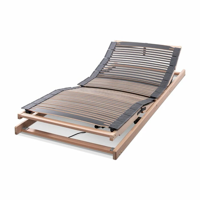 - Kopf- und Fußteil motorisch verstellbar (inkl. Funkfernbedienung, mit Netzfreischaltung und Notabsenkung)