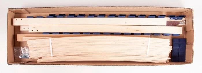 - Lattenrost wird platzsparend und zerlegt im Karton geliefert