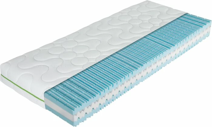 - Punktelastischer 7-Zonen-Kaltschaumkern mit Querbelüftung, Beckenkomfortzone, Schulterkomfortzone, Lordosestütze, Kopf- und Fußzone