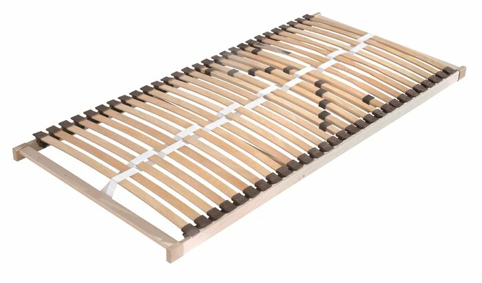 - Lattenrost, unverstellbar mit 14 Doppellattenelementen, aufliegend, Leisten gelagert in flexiblen Kautschukkappen, mit Mittelgurt zur gleichmäßigen Gewichtsverteilung