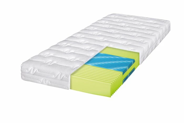 - Mit tailierten Federleisten im Schulterbereich, stufenlose Härteverstellung im Beckenbereich, Bauhöhe: 7 cm