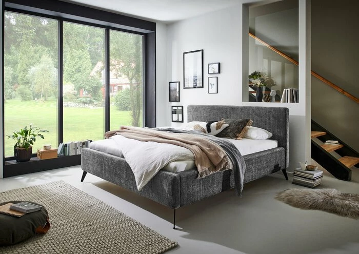 - Gestell aus Spanplatte mit Bouclét-Stoffbezug in anthrazit