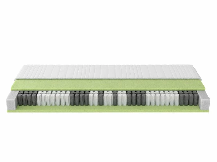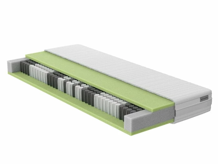 - 7-Zonen-Aufbau mit Taschenfederkern und beidseitig mit einer glatten BULTEX-Auflage (Höhe: je 2,7 cm) in fester Ausführung zur Stabilisierung