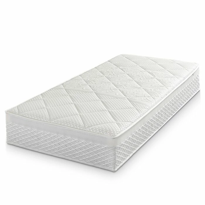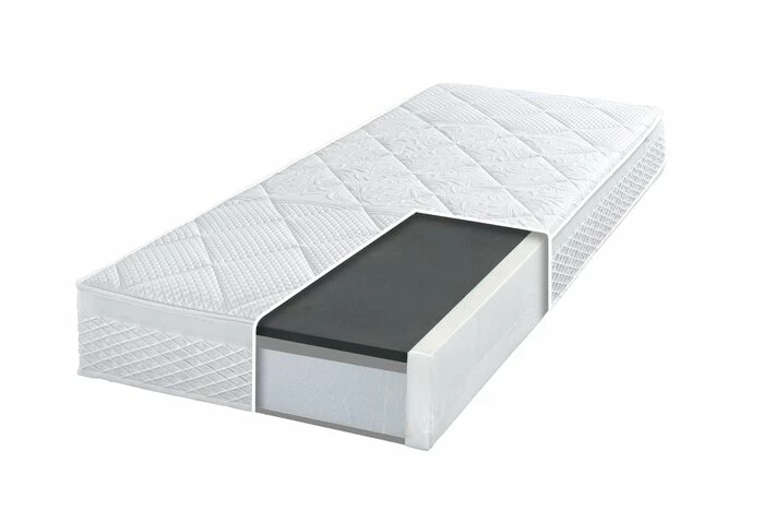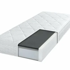 - Obenliegender AQUAPUR®-Schaum in Sandwichbauweise mit Wollfilz-Federkernabdeckung, 3-Zonen-Micro-Taschenfederkern mit 836 Federn, darunterliegender 3-Zonen-Bonell-Federkern mit 207 Federn und innenbefestigtem Taschenfederkern mit 104 Federn