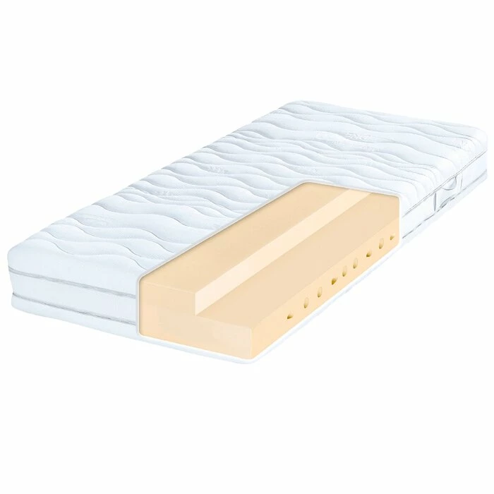- 7-Zonen-Aufbau mit Kombikern (unten: Konturenkaltschaum Höhe: 12 cm, oben: Viscoschaumplatte Höhe: 8 cm)